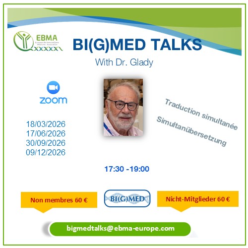 EBMA est l’Association européenne en charge de la promotion de la méthode diagnostique et thérapeutique Bio Médecine Immuno(G)énétique (BI(G)MED).